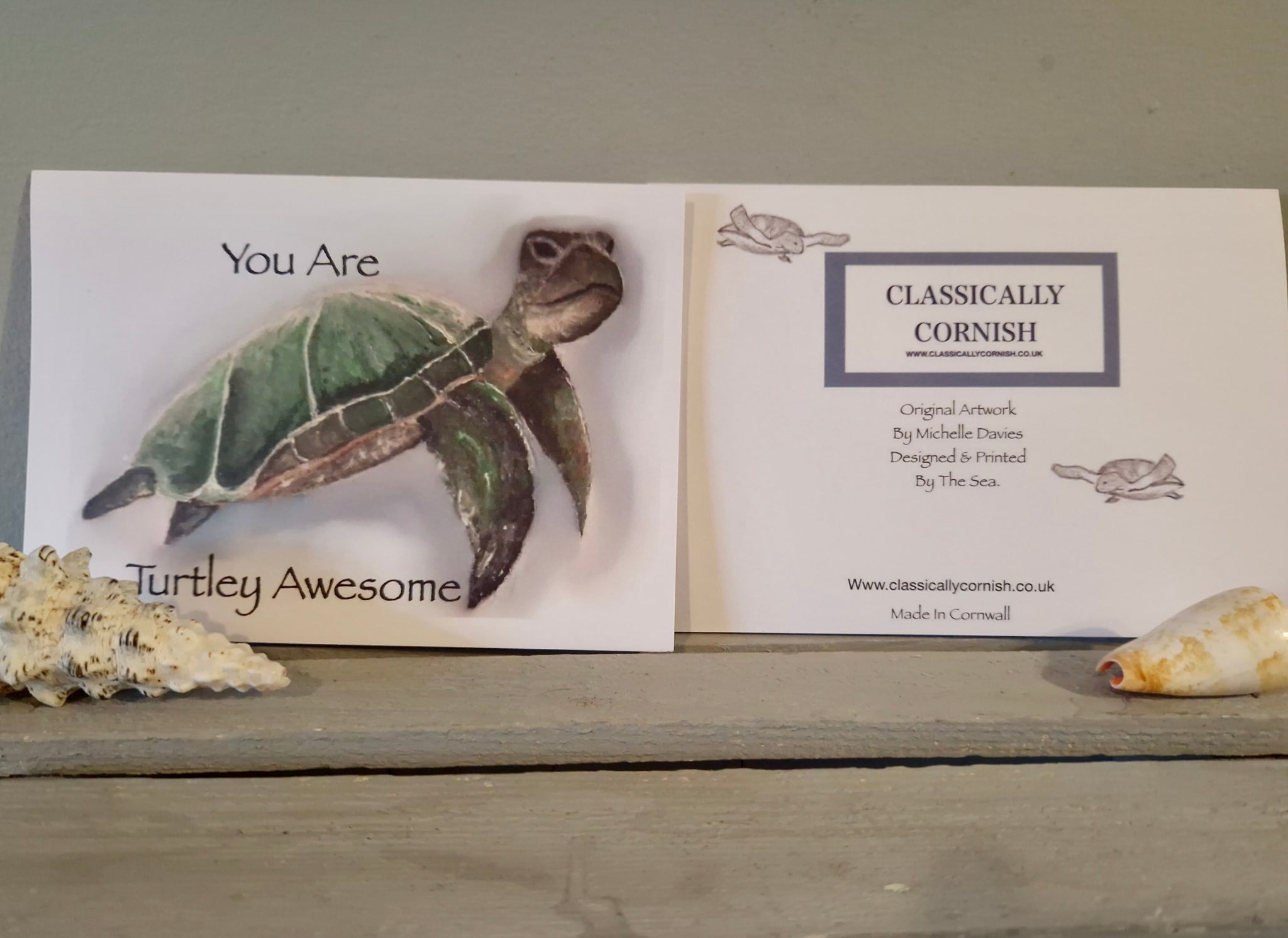 Turtle Greetings Card Original Artwork By Michelle Davies Made In Cornwall.